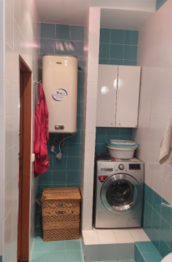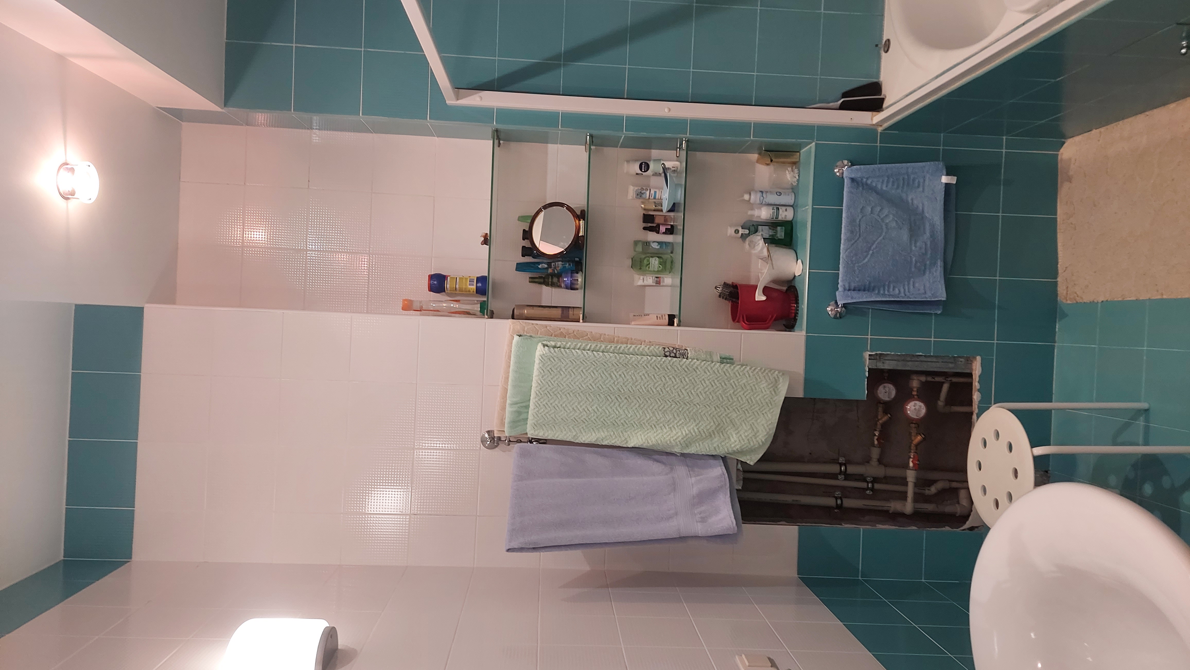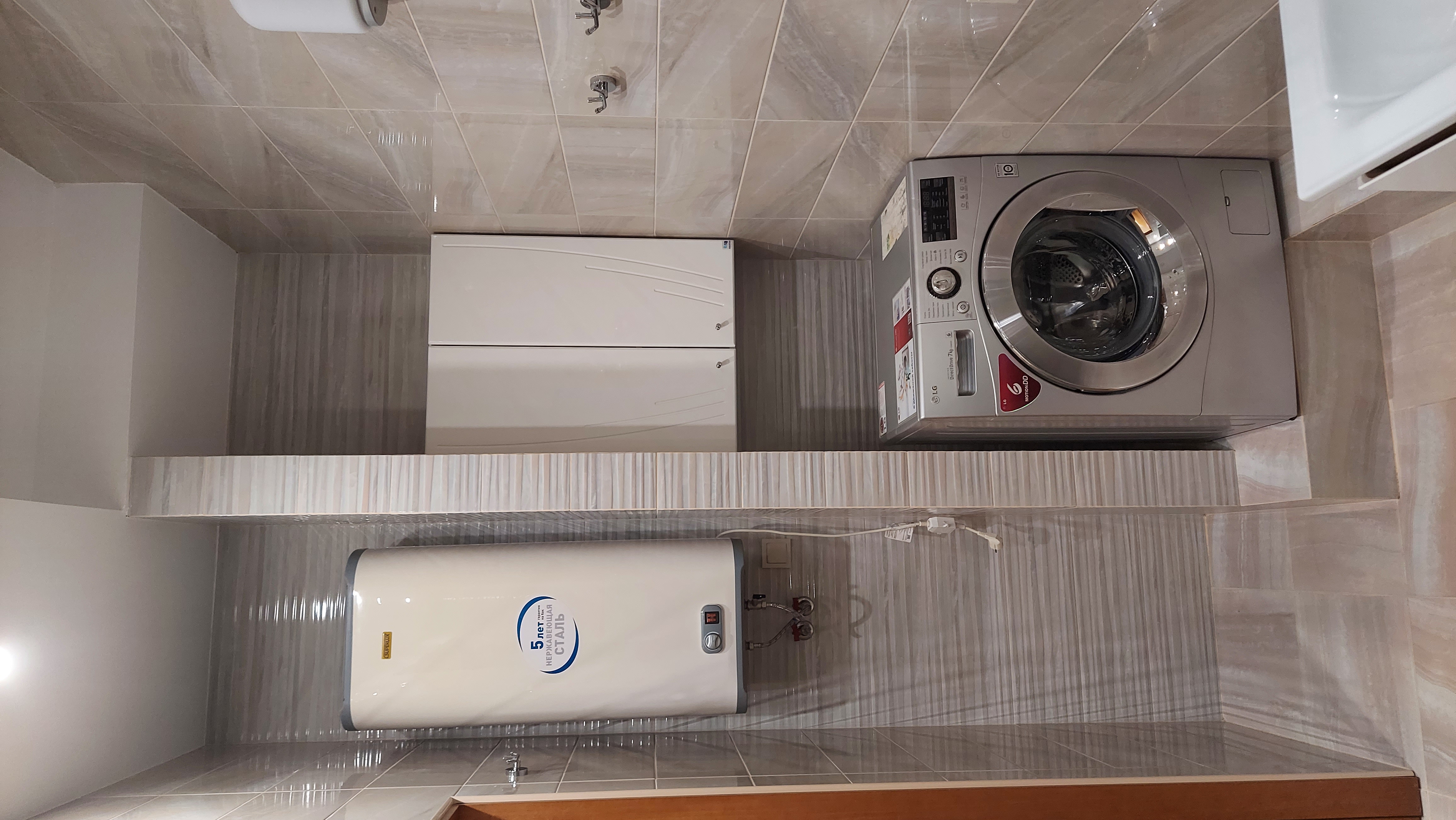 В ходе демонтажных работ была удалена керамическая плитка с клеем с пола и со стен, разобраны короба и фальшстены, и бережно, с сохранением, демонтирована вся установленная сантехника (унитаз, раковина, душевая стойка, стиральная машина, бойлер, инсталляция и вся мебель), а также отслужившие свое инженерные коммуникации.