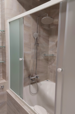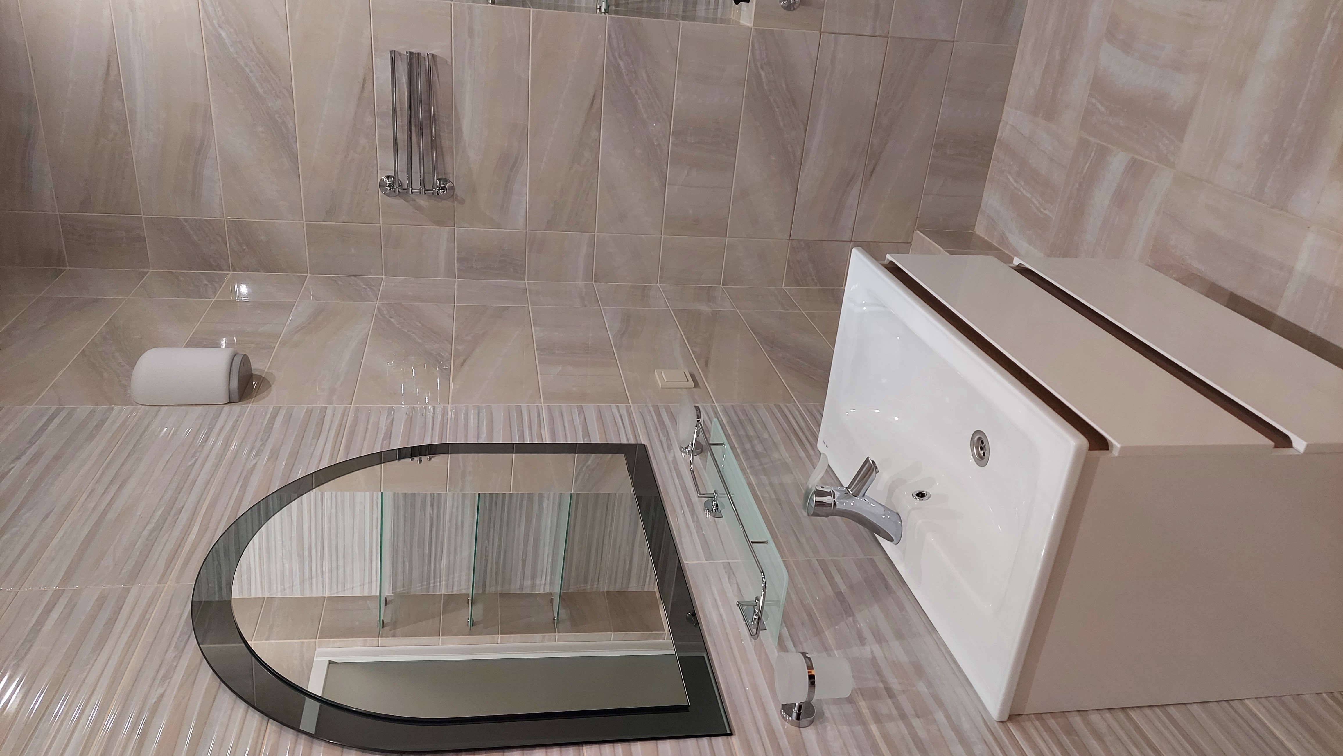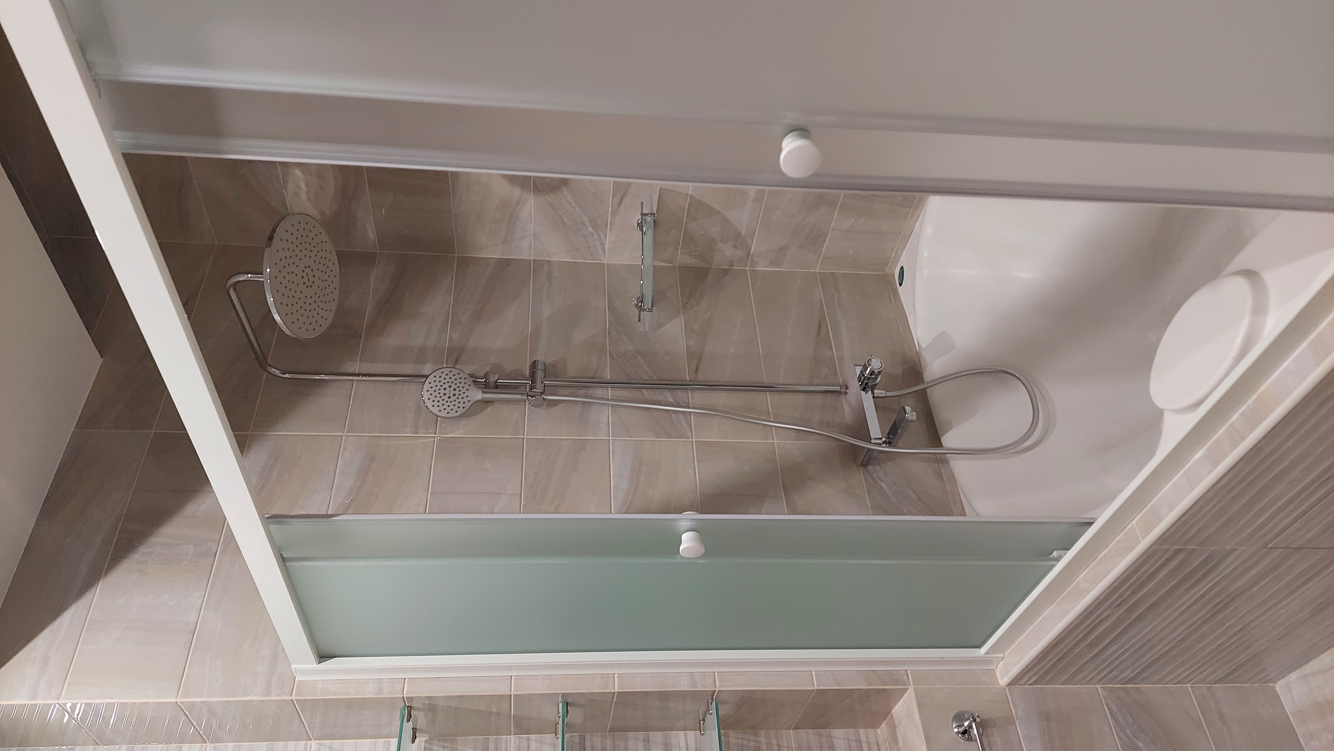 В ванной мы смонтировали все на своих привычных местах, только заменили сантехнику и аксессуары на более технологичные и современные по дизайну: