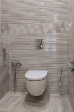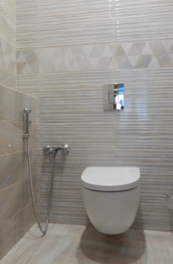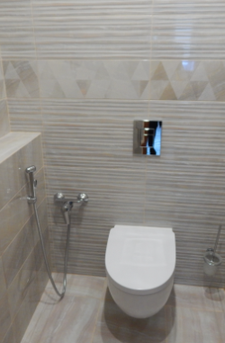 В санузле тоже появилось много «продвинутой» сантехники (гигиенический душ, инсталляция, подвесной унитаз), да и выглядеть он стал гораздо современнее: