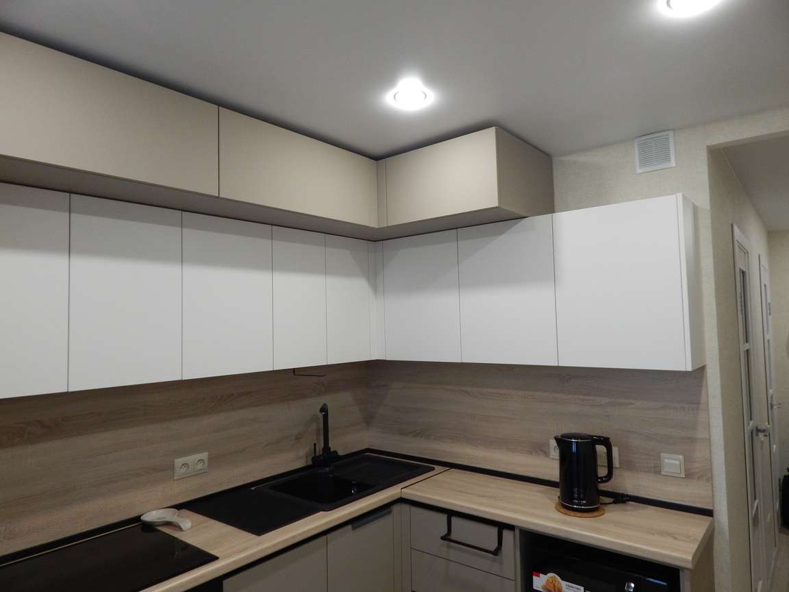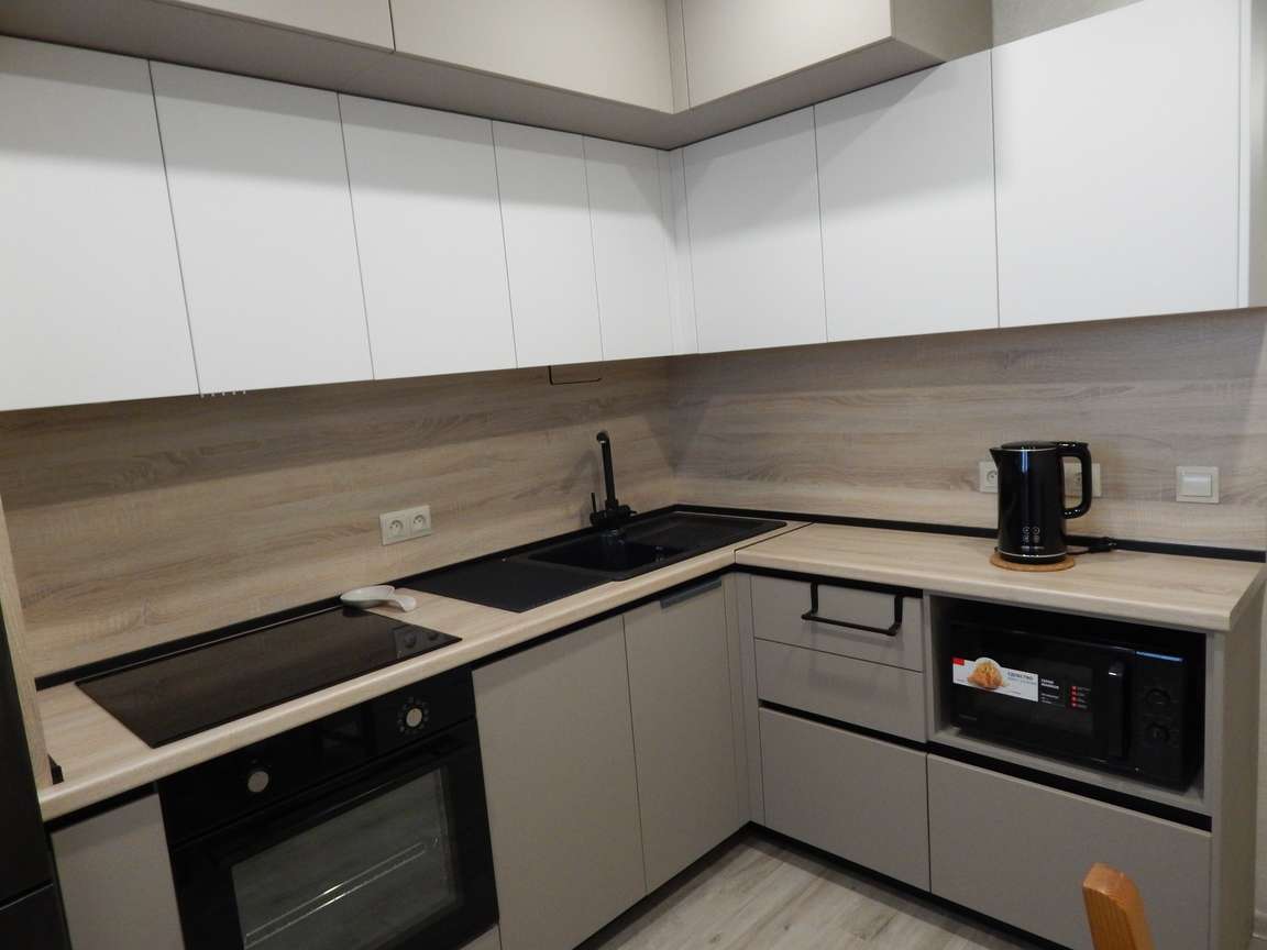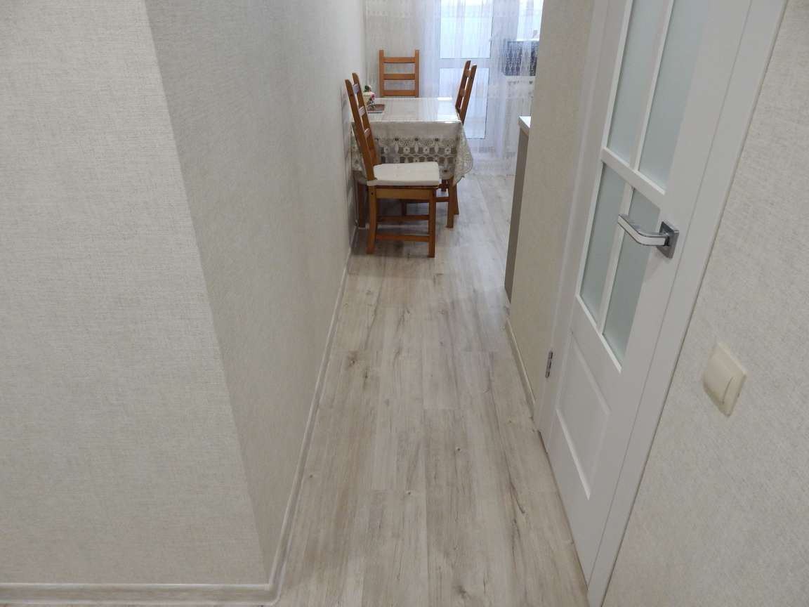 Аналогичная чистовая отделка была выполнена на кухне.